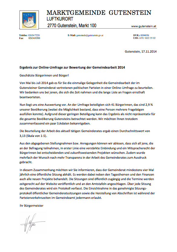 Online Umfrage über die Gemeindearbeit Gutenstein Veröffentlicht von kreuzer2014 0 Ergebnis zur Online-Umfrage zur Bewertung der Gemeindearbeit 2014 Online Umfrage 2014 Teilen mit: Klicke, um auf X zu teilen (Wird in neuem Fenster geöffnet) X Klicken zum Ausdrucken (Wird in neuem Fenster geöffnet) Drucken Klicken, um einem Freund einen Link per E-Mail zu senden (Wird in neuem Fenster geöffnet) E-Mail Klick, um auf Facebook zu teilen (Wird in neuem Fenster geöffnet) Facebook Gefällt mir Wird geladen … Ähnliche Beiträge