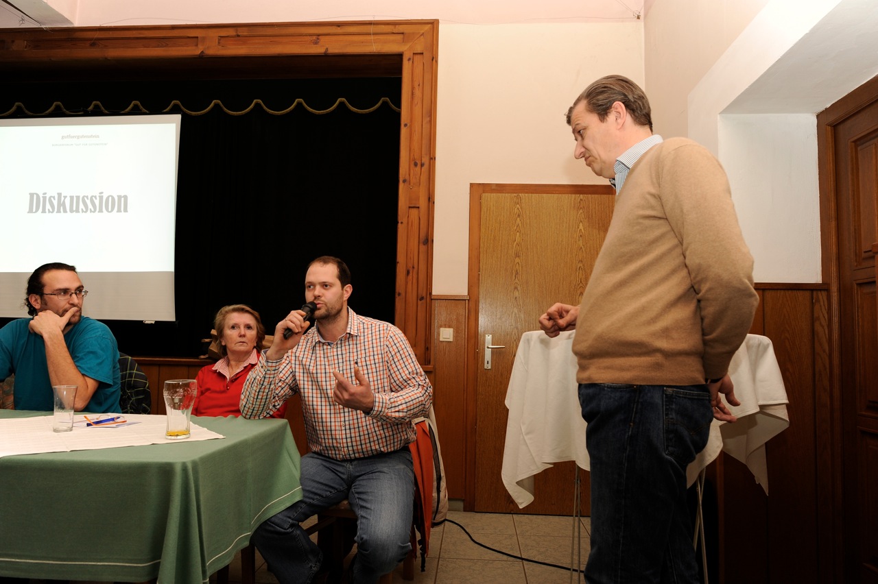 - 7./ Ich bin nicht als Söldner aus Wopfing gekommen, sondern wie ich dies auch klarlegte, als Sprecher für die Gruppe „Wir Gutenstein“. Schon vor Beginn war dies mit der Moderation abgesprochen und ebenso geplant, dass zunächst die Fragestellungen abzuwarten seien und ich danach im Namen dieser Gruppe den Vorschlag präsentieren werde. Das habe ich getan, das war es. Klare Mitteilung mir gegenüber dahingehend, dass ich beim Standort Ledererhaus hinter der Volksbank eine Machbarkeitsstudie erwirken sollte. Ich habe danach viel getan, insbesondere einen Architekten beauftragt.