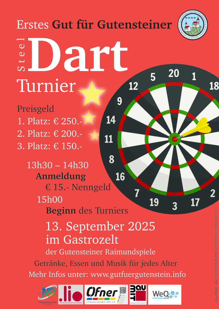 Veranstaltungen Steel Dart Turnier 2025 Ablauf Sponsoren: Anni´s Frisiersalon Gasthaus Kreuzhof Meistertischlerei Johannes Seeböck e.U. Teilen mit: Klicke, um auf X zu teilen (Wird in neuem Fenster geöffnet) X Klicken zum Ausdrucken (Wird in neuem Fenster geöffnet) Drucken Klicken, um einem Freund einen Link per E-Mail zu senden (Wird in neuem Fenster geöffnet) E-Mail Klick, um auf Facebook zu teilen (Wird in neuem Fenster geöffnet) Facebook Gefällt mir Wird geladen …